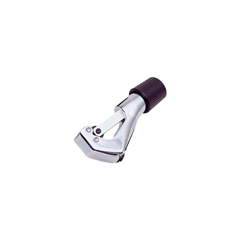 Telescoping Tubing Cutters are a good choice for tight spaces as their feed screw telescopes to advance the cutter wheel to the pipe. This means the cutters remain a consistent size throughout the cut and do not require extra space. TC11 telescoping tubing cutter with strong, aluminum alloy body and nickel-chrome finish, makes a clean, square cut. Cutter has telescoping feed screw, fold-out reamer, grooved rollers and a spare cutting wheel. TC14 telescoping tubing cutters move smoothly and offer a slide-out, pencil reamer. TC14 features a spare cutter wheel.