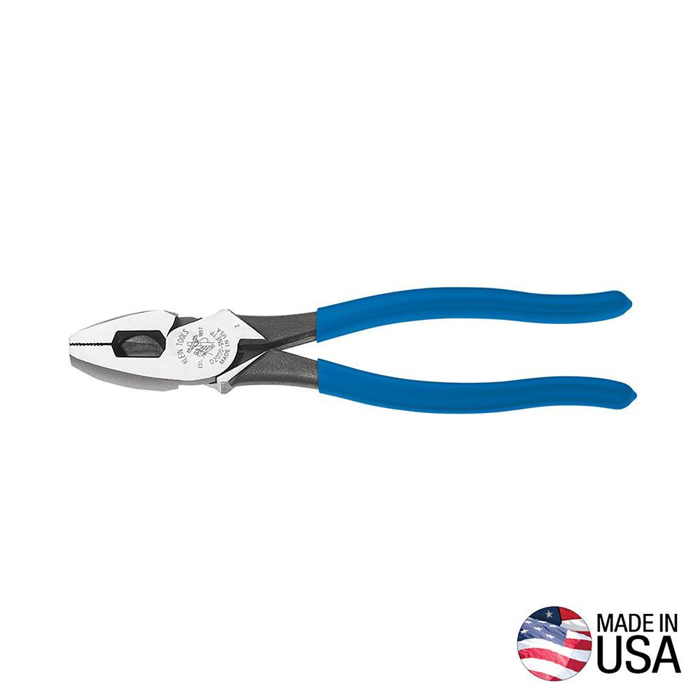 These Lineman's Side-Cutting pliers feature a built-in channel to pull steel fish tapes without damaging the wire. Cutting knives are induction hardened for long life. The 2000 series blades are designed for heavy-duty cutting of ACSR, screws, nails, and most hardened wire. The high-leverage design provides 46-Percent greater cutting power than other plier designs. Exclusive handle tempering absorbs the snap when cutting wire. Pick up these Klein's and feel the difference.