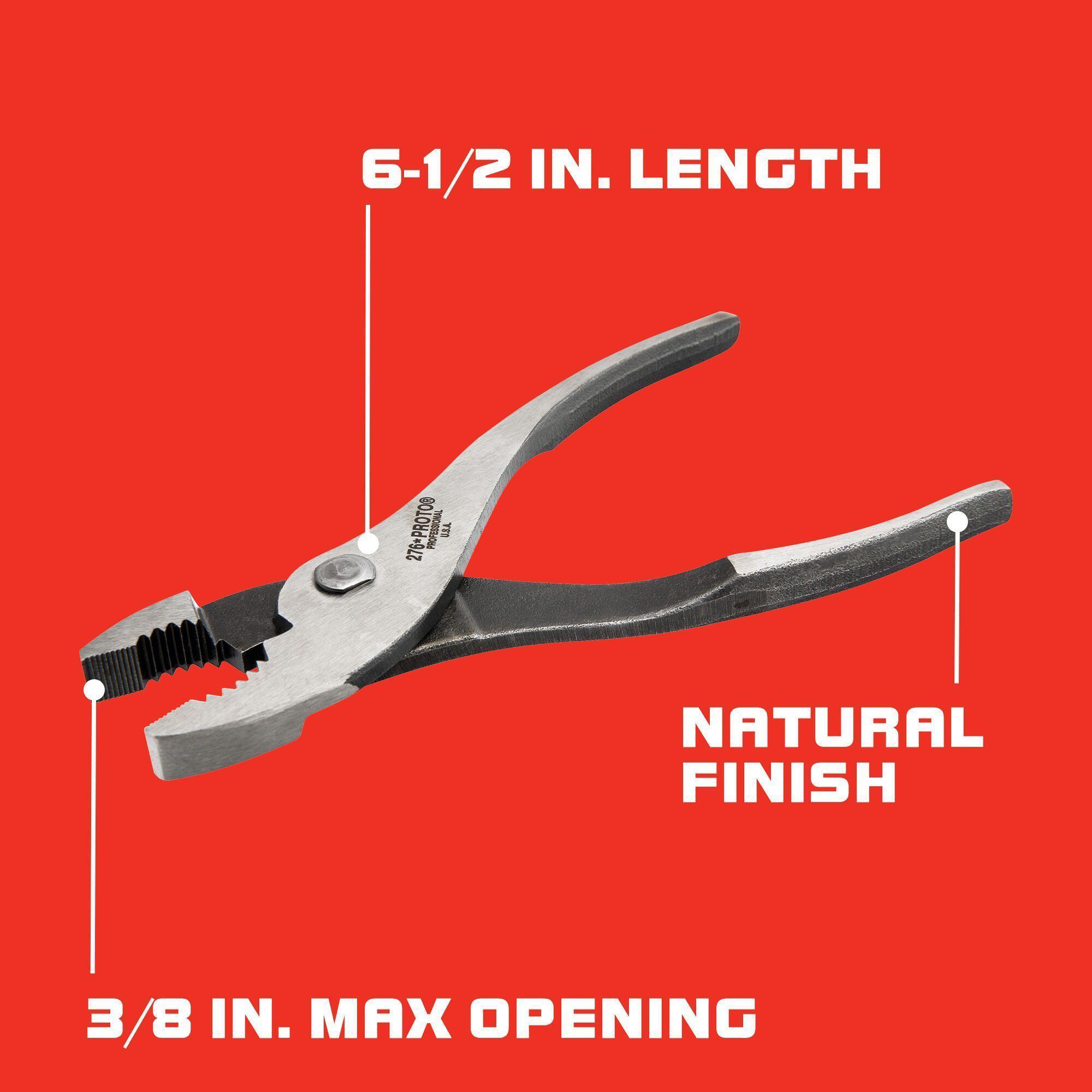 Proto® J276 Combination Slip Joint Plier, 1-3/4 in L x 1-3/16 in W x 3/8 in THK Forged Alloy Steel Jaw, Serrated Jaw Surface, 6-1/2 in OAL, ASME B107.23