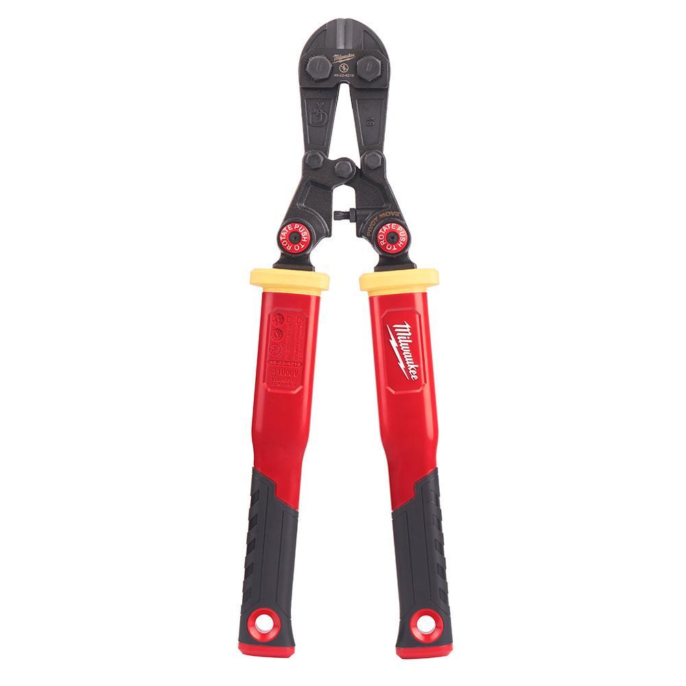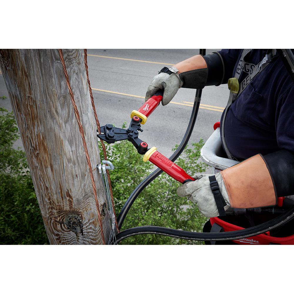 The MILWAUKEE® 18" Fiberglass Bolt Cutters with PIVOTMOVE™ Rotating Handles are engineered to provide the best access. The adaptable rotating handles allow for more cuts around obstacles common in utility environments. The fiberglass bolt cutters are 1000V UL classified to provide added security. The forged steel bolt cutter blades are custom heat treated for maximum durability. Bolt Lock secures the pivot bolts to prevent loosening. The 18" bolt cutters have slim ergonomic handles allowing for comfortable use in multiple orientations. The Fiberglass Bolt Cutters with PIVOTMOVE™ Rotating Handles have lanyard holes integrated through the handles for easy tethering.