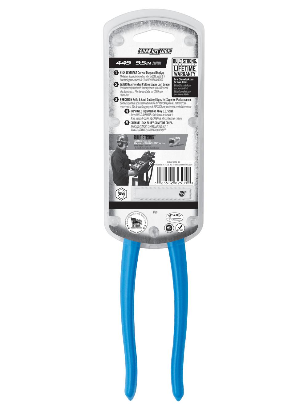 Channellock® 449 Lap Joint Diagonal Cutting Plier, 3/32 in Hard Wire, 11/64 in Soft Wire THK Max Wire, 1.02 in L x 1-1/16 in W High Carbon Steel, 9.54 in OAL