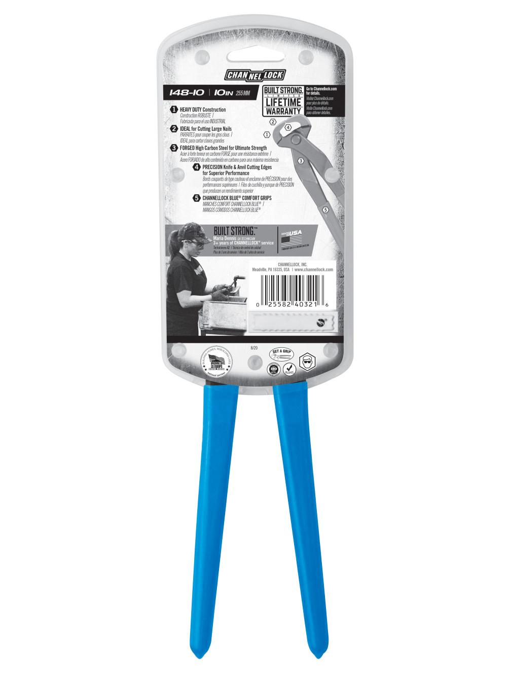 Channellock® 148-10 End Nipper, 0.047 to 0.091 in Medium Hard Wire/0.162 in Dia Max Soft Wire Cutting, 0.62 in Jaw, 10 in L, Plastic Handle