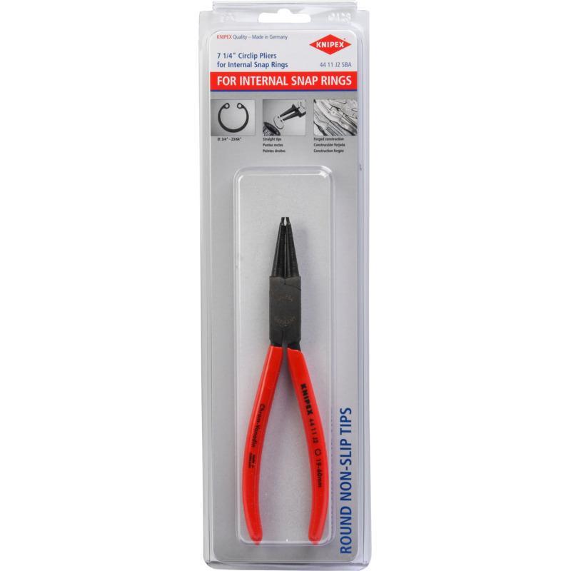 Knipex® 44 11 J2 SBA Forged Internal Snap Ring Solid Style Circlip Plier, 1.8 mm Straight Tip Jaw, 7-1/4 in OAL
