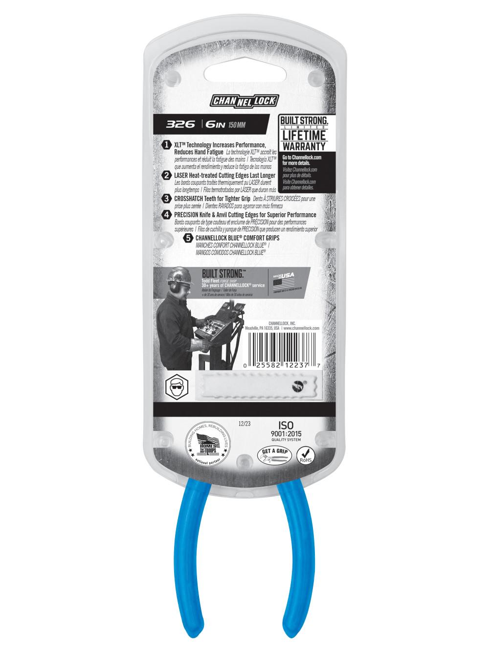 Channellock® 326 Long Nose Plier With Side Cutter, 2.08 in L x 3/4 in W, Cross Hatched High Carbon Steel Jaw, 6.1 in OAL