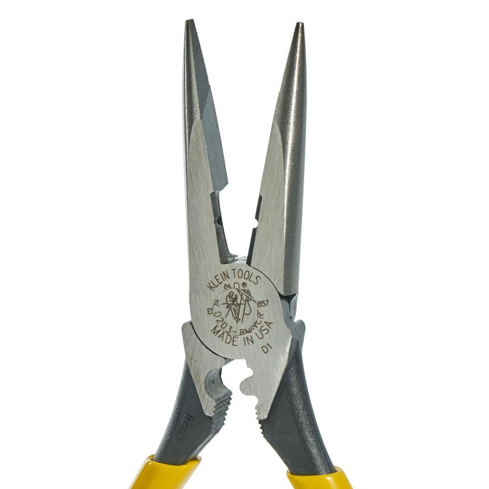 Klein® D203-8 Heavy Duty Long Nose Plier, Tool Steel Jaw, 2.313 in L x 1 in W Jaw, 8.438 in OAL