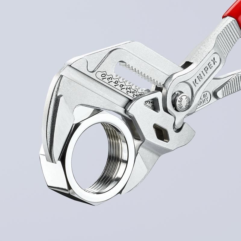 Knipex® 86 03 180 SBA Pliers Wrench, 1-3/8 in Nut Nominal, 1 in L x 7/8 in W Chrome Vanadium Steel Narrow Gripping Straight Jaw, Parallel Jaw Surface, 180 mm OAL