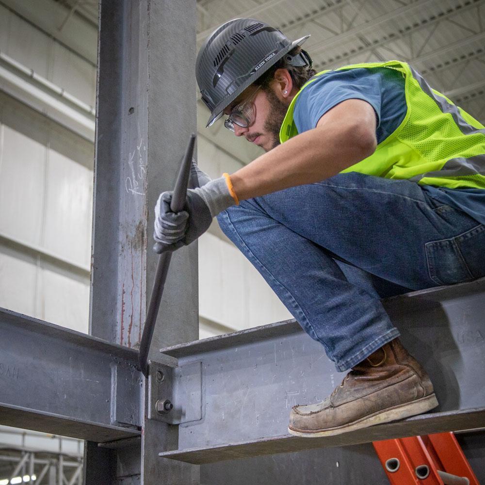 Klein Tools Round Connecting Bars are designed so they provide extra-leverage when positioning steel members and aligning bolt holes. Round bars are made of hardened steel for durability and long life. These forged fit-up bars are pointed on one end for versatility.