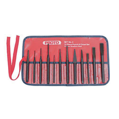 Proto® J2S2 Punch and Chisel Set, Cape/Center/Cold/Diamond Point/Pin/Starting Style, 3/16 to 1/2 in Chisel, 1/16 to 3/8 in Punch, 7 Punches, 5 Chisels, 12 Pieces
