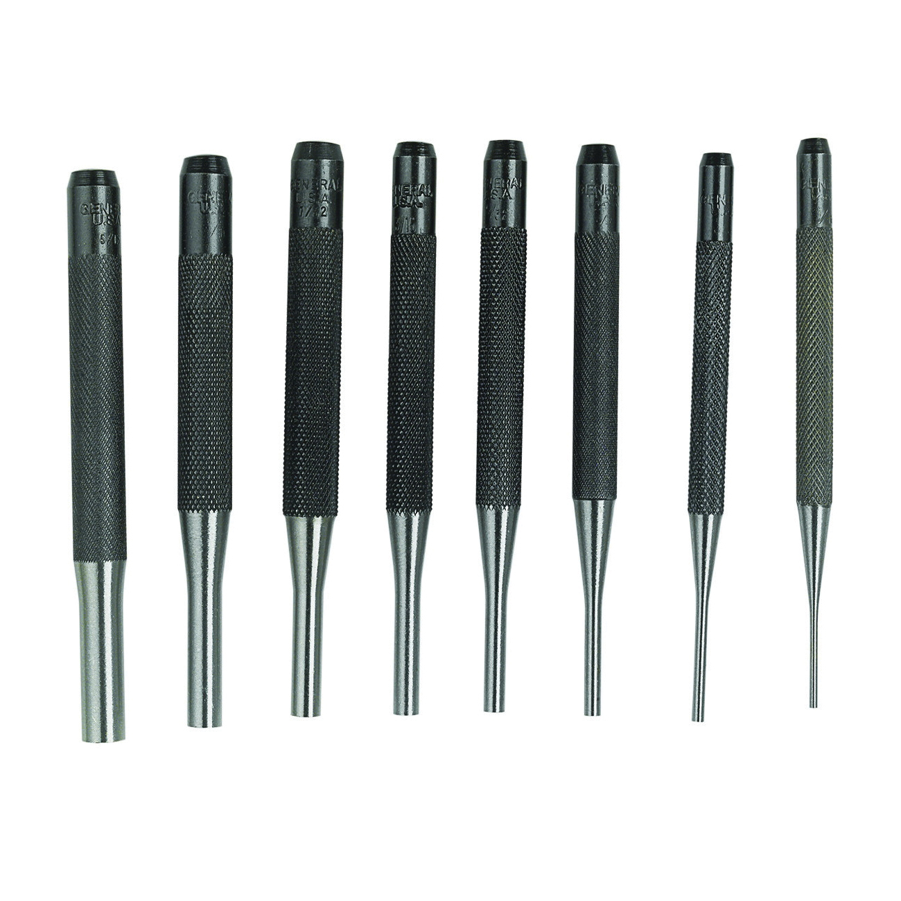 GENERAL® SPC75 Drive Pin Punch Set, 1/16 to 5/16 in Punch, 4 in OAL, 8 Pieces