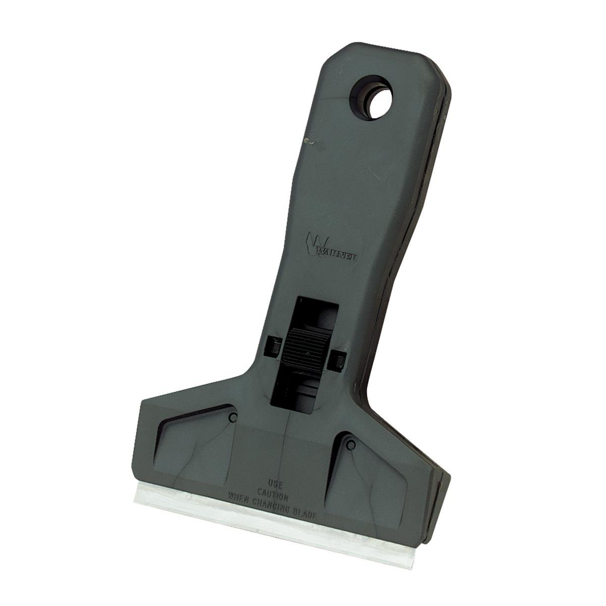 THE GLASS & TILE SCRAPER FEATURES A COMFORTABLE HANDLE AND A 4" BLADE FOR SCRAPING PAINT AND OTHER RESIDUE FROM GLASS. THE WIDE BLADES REDUCT THE TIME NEEDED FOR SCRAPING PROJECTS AND ARE EASIER AND SAFER TO CHANGES. EACH SCRAPER COMES WITH 1 BLADE.