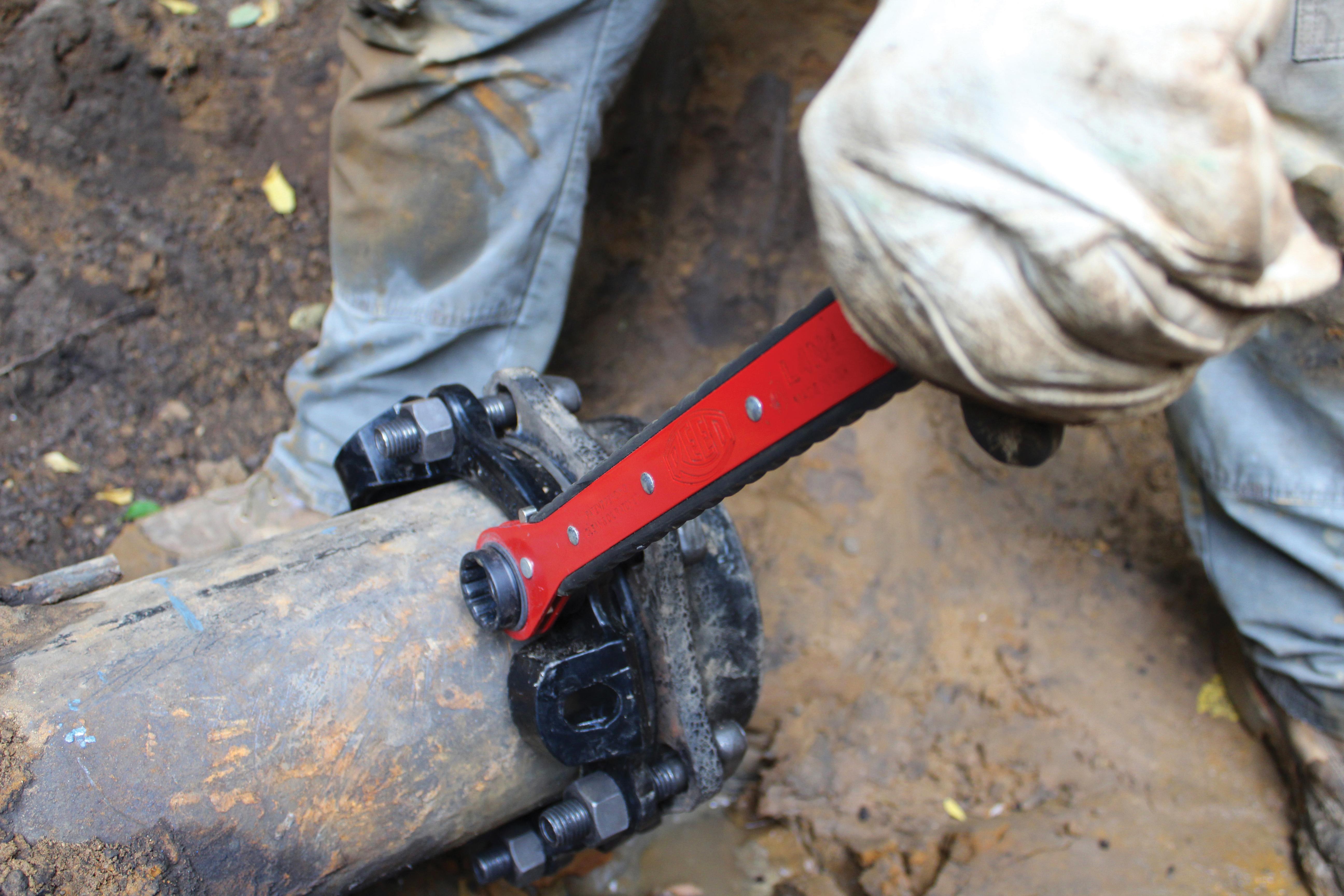 REED's L4N1 and L4N1XP Thru-Bolt™ ratchet wrenches feature four sockets on one wrench in a popular dog bone configuration. The sockets are designed to stay on the handle, which means there are no loose sockets to misplace. The length and design of the handle provide maximum leverage. And, the rugged, textured handle grip ensures a secure hold for the operator. Use just one tool to work on mechanical joints and restraints, repair clamps, service saddles, gas/water couplings, flange bolts, friction clamps, hydrant break flanges and some bonnet bolts. Additionally, tightening nuts on long bolts or all-thread rod is never a problem with REED's Thru-Bolt™ sockets which work by letting the bolt pass completely through the socket and arm head so nuts can be worked on any threaded length. Thru-bolt sockets replace the need for separate regular and deep sockets. L4N1XP provides superior performance and extra protection as the sealed ratchets keep out most debris and dirt. Regular tool cleaning and maintenance is recommended for both wrench models. These socket wrenches are made in USA.
