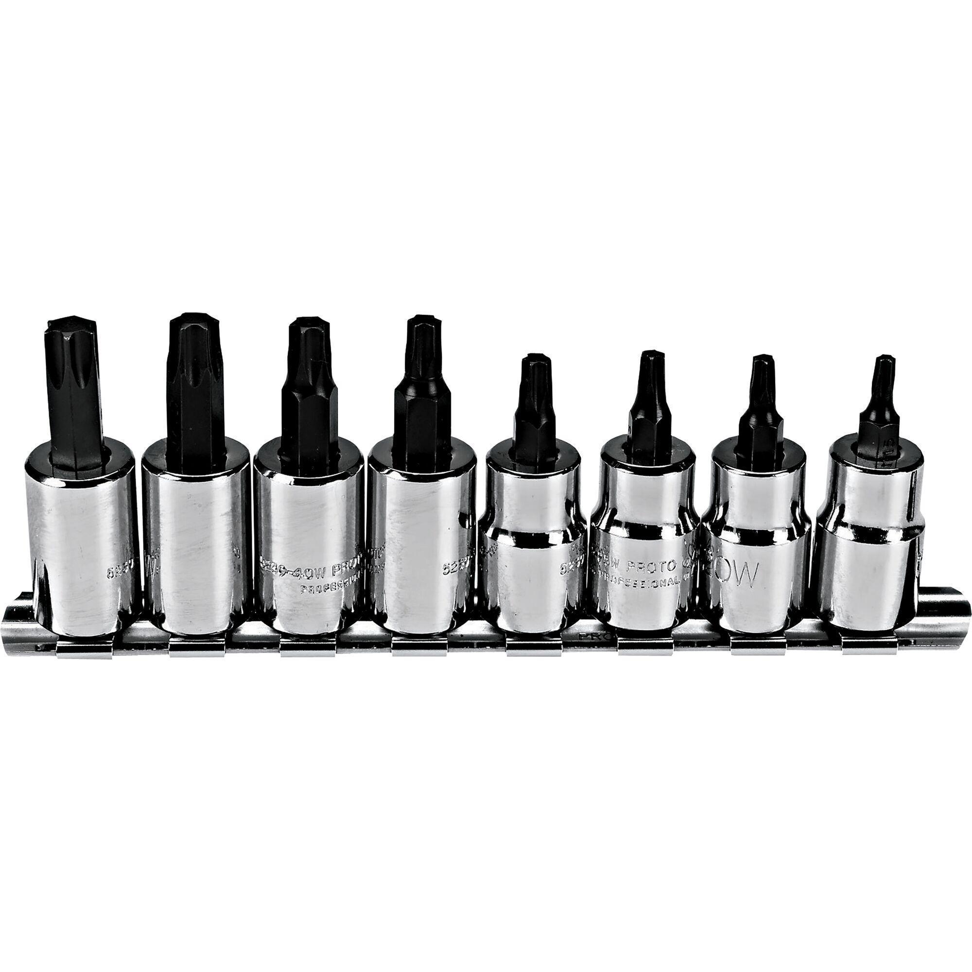 Proto® J5239C Socket Bit Set, 3/8 in Drive, T15 to T50 Torx, 8 Pieces, Full Polished