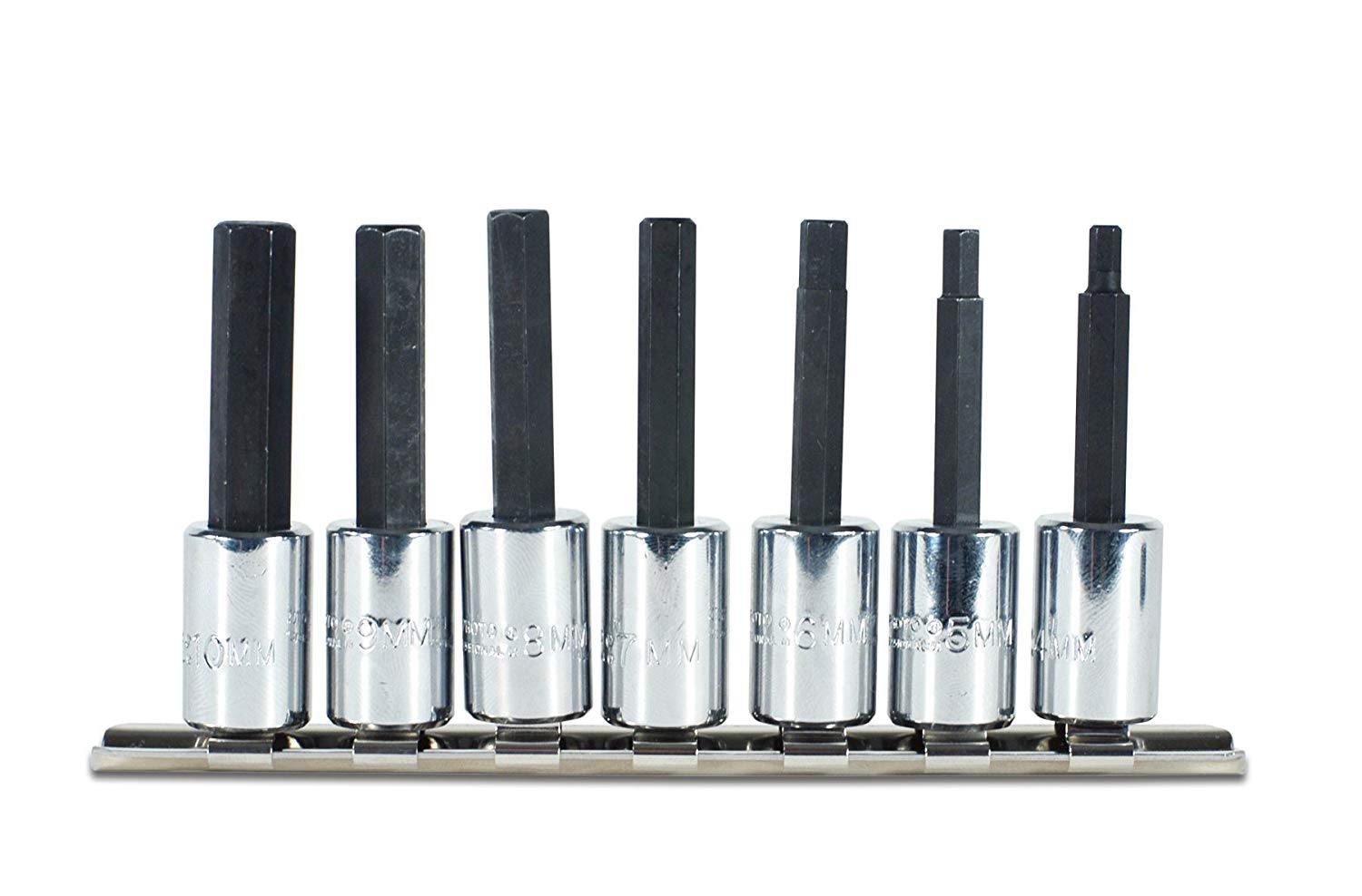 Includes(7) 3/8 in Drive Hex Bit Sockets and (2) Socket Holders
