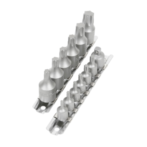 Performance Tool™ W1313 Star Driver Bit Set, 1/4, 3/8 in Drive, T10 to T30/T40 to T60 Torx, 15 Pieces, Professional Sand