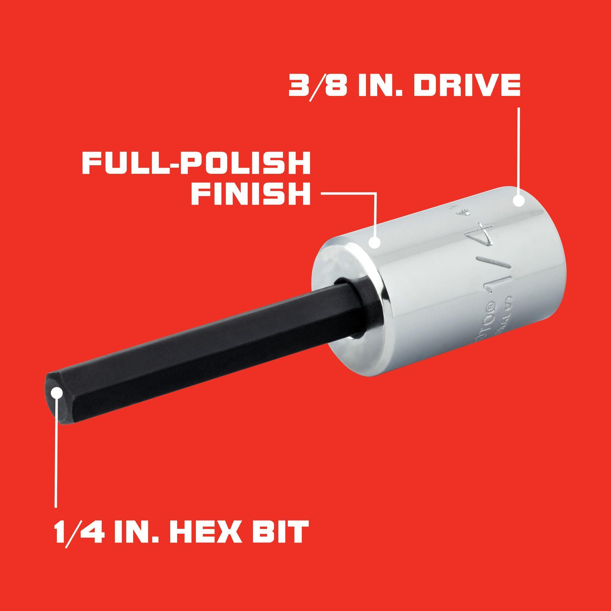 Proto® J49901/4 Standard Length Socket Driver Bit, Imperial, 3/8 in, 1/4 in, 1-5/8 in L Bit, Federal GGG-W-641Ex