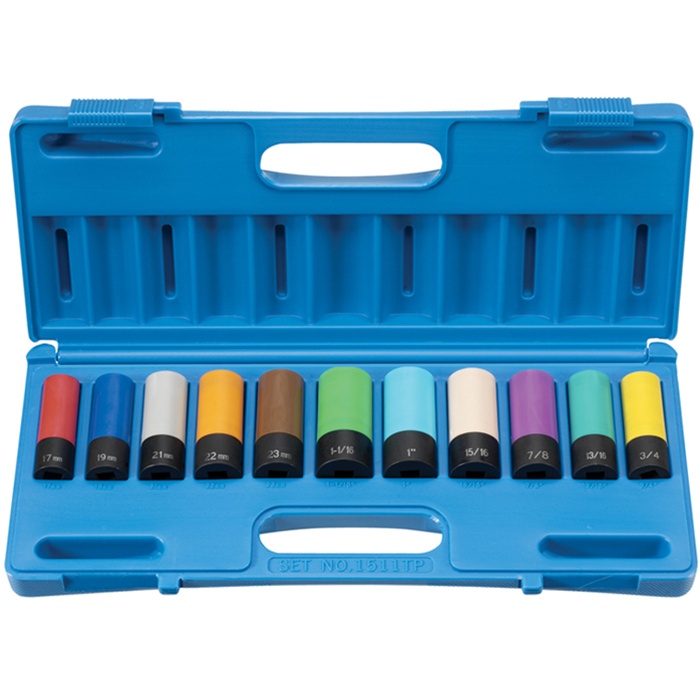 11-PIECE 6-PT 1/2" -DRIVE WHEEL AND NUT PROTECTING IMPACT SOCKET SET-GRY1511TP >