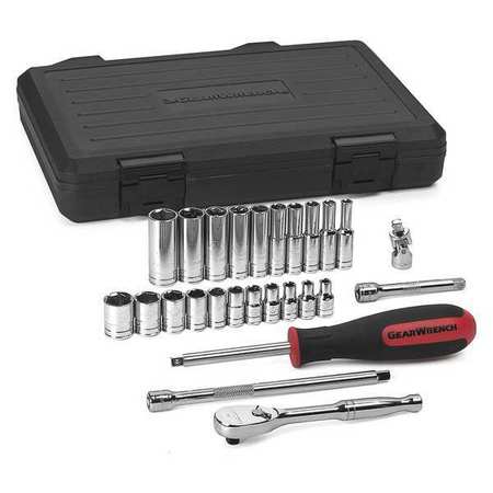 26-PC 1/4" DRIVE 6 POINT SOCKET SET-GRW80312>