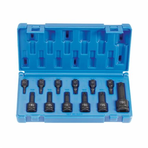 GP® 1234T Internal Star Impact Socket Set, Imperial, 1/4 in, 1/2 in Drive, 12 Pieces, Included Socket Size: T10 to T60, Molded Storage Case Container