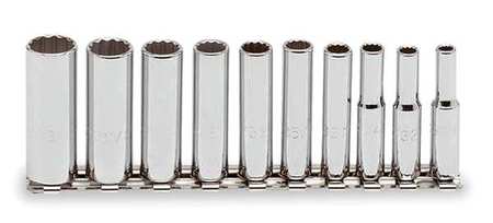Includes(2) Socket Holders, (10) 1/4 in Drive Deep Sockets