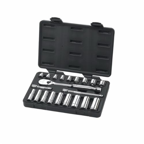 GEARWRENCH® 80557 Socket Set, ASME B107.1/B1007.10, 6, 12 Points, 3/8 in Drive, 21 Pieces, Included Socket Size: 3/8 to 3/4 in, Blow Molded Case Container