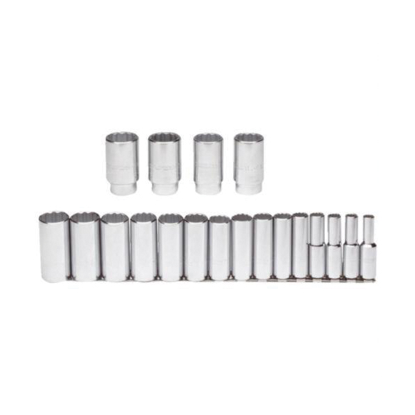 Includes(2) Socket Holders and (19) 1/2 in Drive Deep Sockets