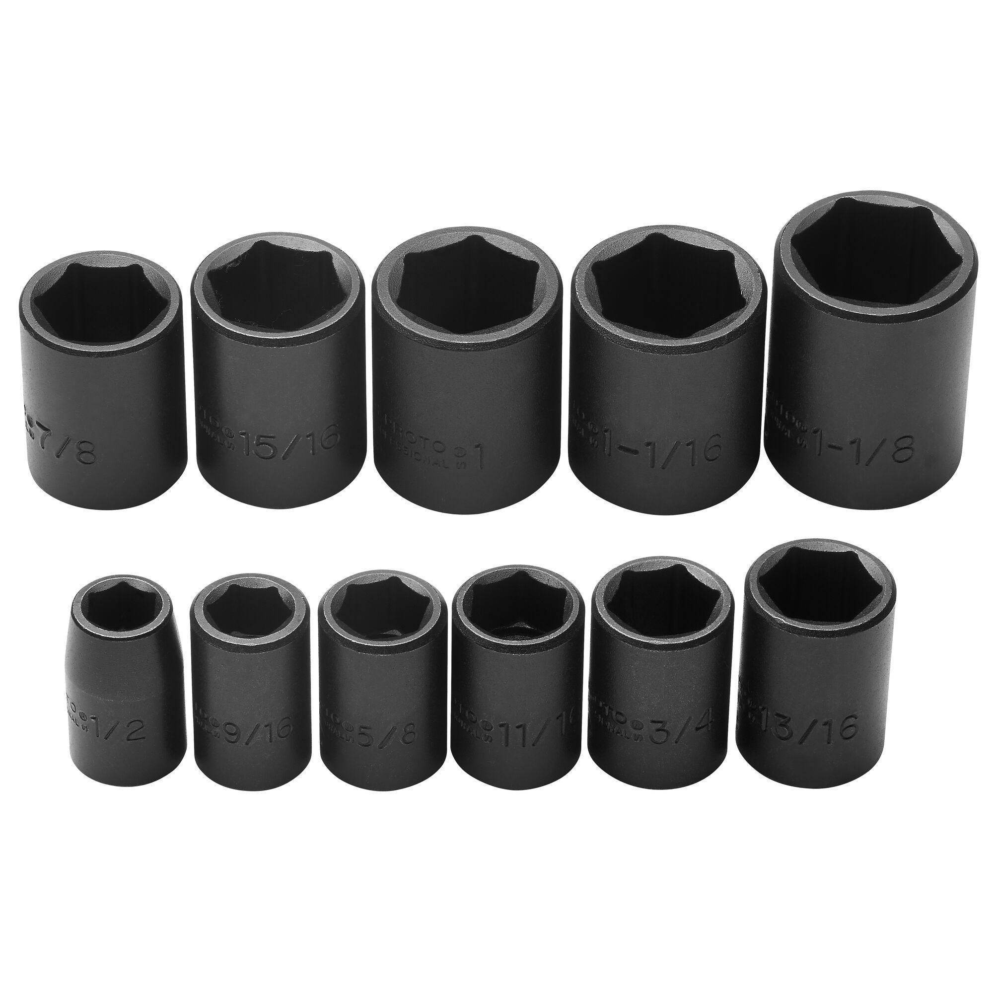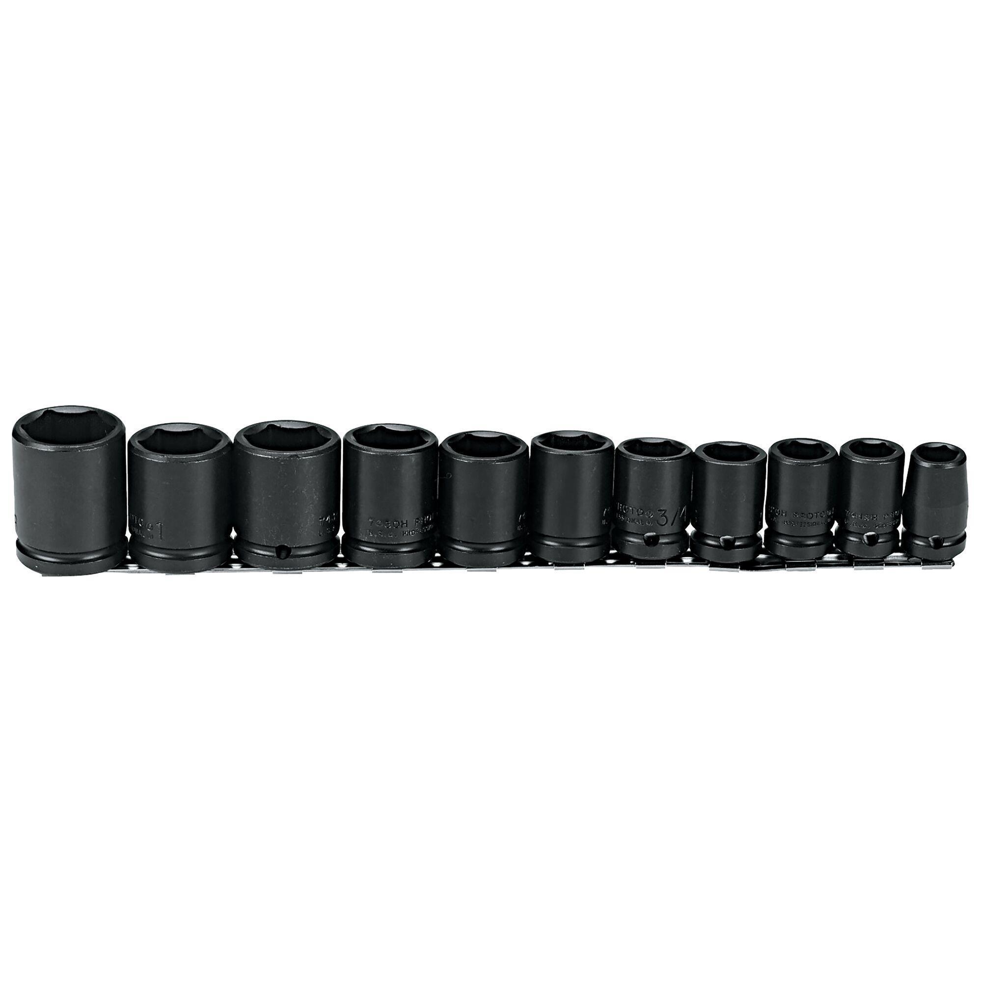 Proto® TorquePlus™ J74102 Deep Socket Set, ASME B107.2, 6 Points, 1/2 in Drive, 11 Pieces, Included Socket Size: 1/2 to 1-1/8 in