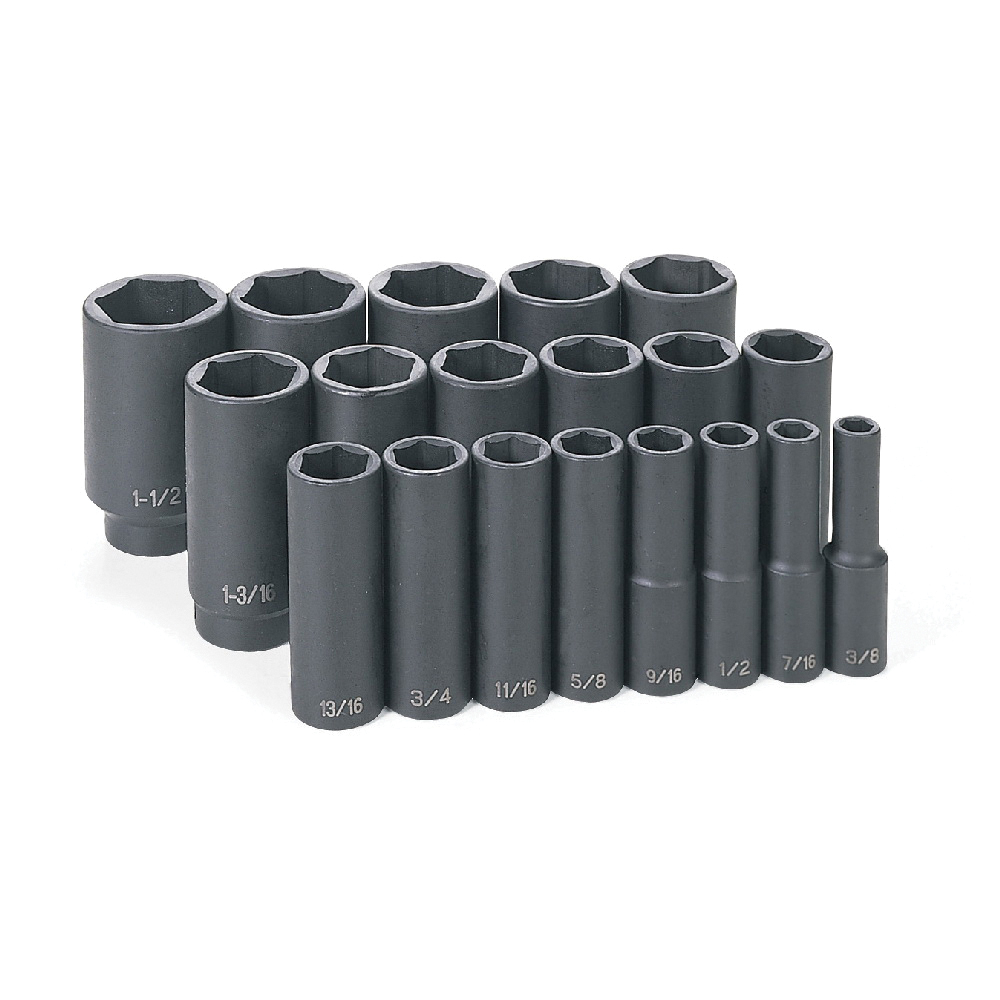 GP® 1319D Deep Length Socket Set, Imperial, 6 Points, 1/2 in, 19 Pieces, Molded Storage Case Container