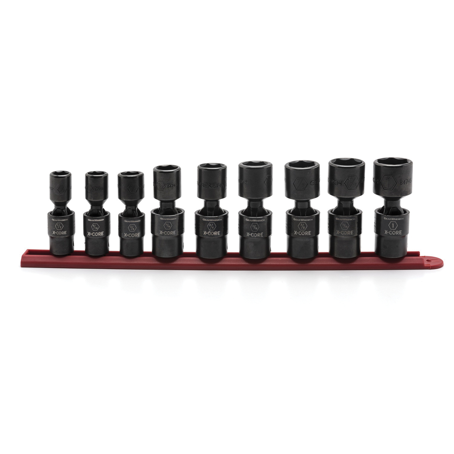GEARWRENCH® X-Core™ 84978 Pinless Standard Length Universal Socket Set, ASME Specified, 6 Points, 1/2 in Drive, 9 Pieces, Included Socket Size: 1/2 to 1 in, Rail Container