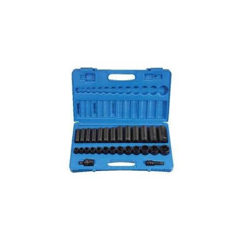 GP® 1328RD Standard Length Socket Set, 6 Points, 1/2 in Drive, 28 Pieces, Included Socket Size: 7/16 to 1-1/4 in, Molded Storage Case Container