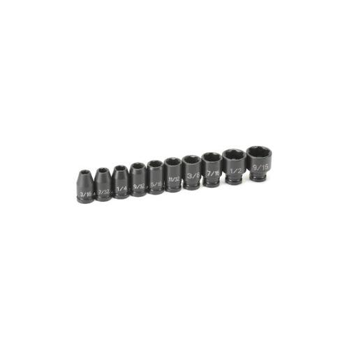 GP® 9710 Standard Length Socket Set, 6 Points, 1/4 in Drive, 10 Pieces, Included Socket Size: 3/16 to 9/16 in, Molded Storage Case Container
