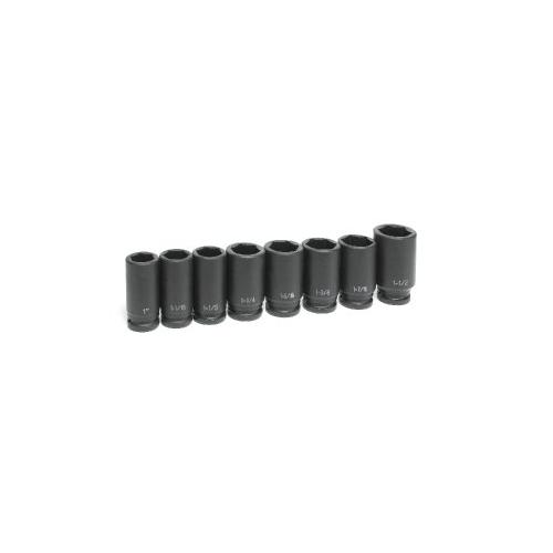 GP® 8034D Deep Length Socket Set, 6 Points, 3/4 in Drive, 8 Pieces, Included Socket Size: 1 to 1-1/2 in, Molded Storage Case Container