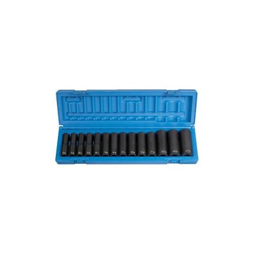 GP® 1213MD Deep Length Socket, 6 Points, 3/8 in Drive, 13 Pieces, Included Socket Size: 7 to 19 mm, Molded Storage Case Container