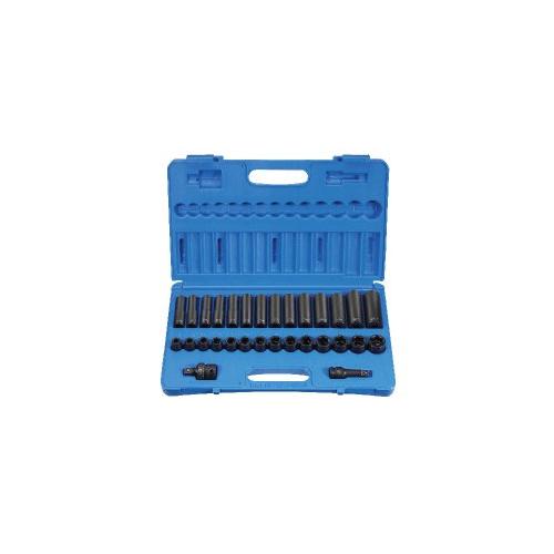GP® 1430MRD Standard Length Socket Set, 6 Points, 1/2 in Drive, 30 Pieces, Included Socket Size: 10 to 24 mm, Molded Storage Case Container