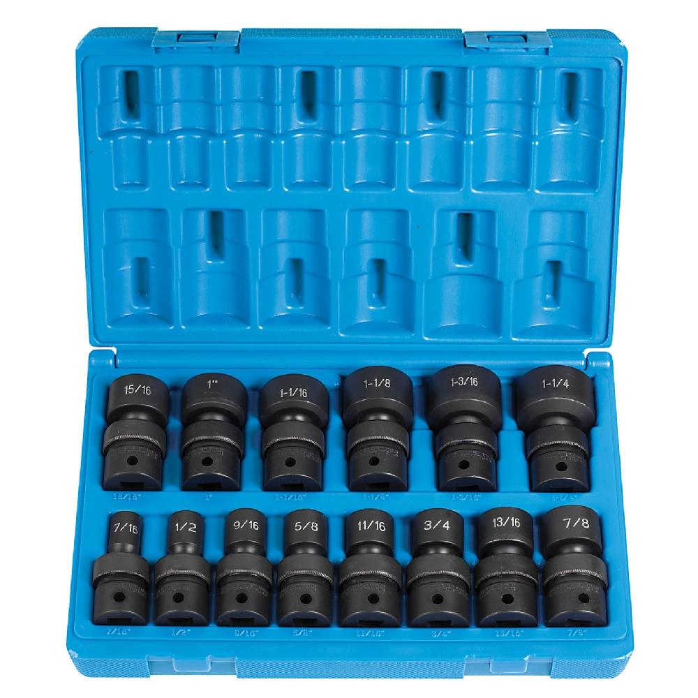 GP® 1714U Standard Length Socket, 12 Points, 1/2 in Drive, 14 Pieces, Included Socket Size: 7/16 to 1 1/4 in, Molded Storage Case Container