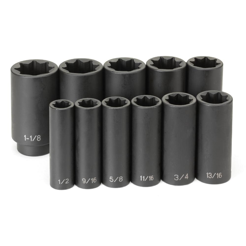 - 1/2 in Drive 11 Piece Deep Set - 8 Point