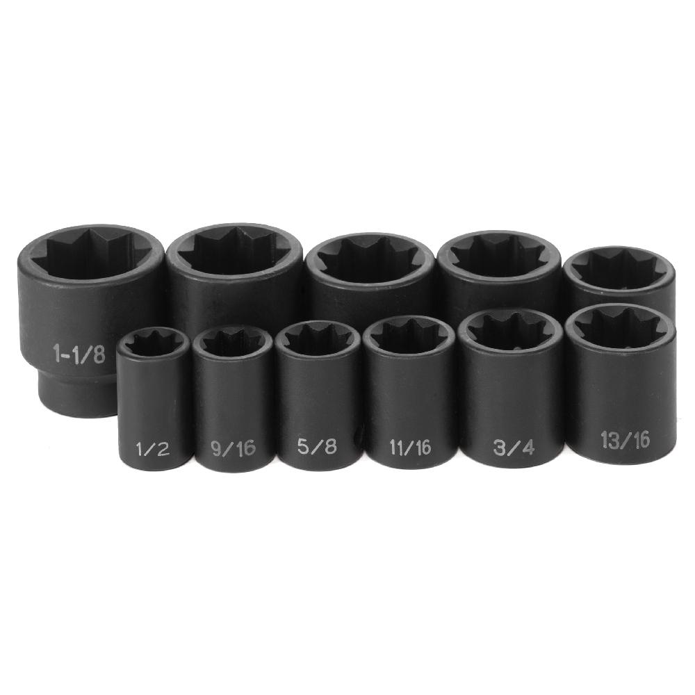 - 1/2 in Drive 11 Piece Standard Set - 8 Point