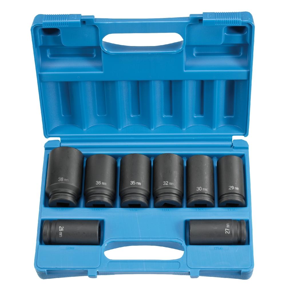 GP® 8134MD Deep Length Socket, 6 Points, 3/4 in Drive, 8 Pieces, Included Socket Size: 26 to 38 mm, Molded Storage Case Container