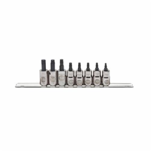 Includes11-872 T15, 11-874 T20, 11-876 T25, 11-878 T27, 11-880 T30, 11-882 T40, 11-884 T45, 11-886 T50 Sockets, 16-843 Steel Sockets Clip and 16-831 9 in Metal Sockets Rail