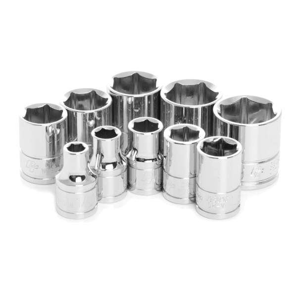 Wilmar™ W38002 Socket Set, 10 Pieces, Chrome Vanadium Alloy Steel, Polished Chrome/Nickel Plated