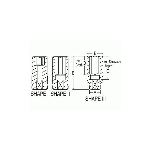 7/16" X 3/8" SQUARE DRIVE SOCKET, 6" PT. LONG & EXTRA LONG LENGTH-APX3314 >