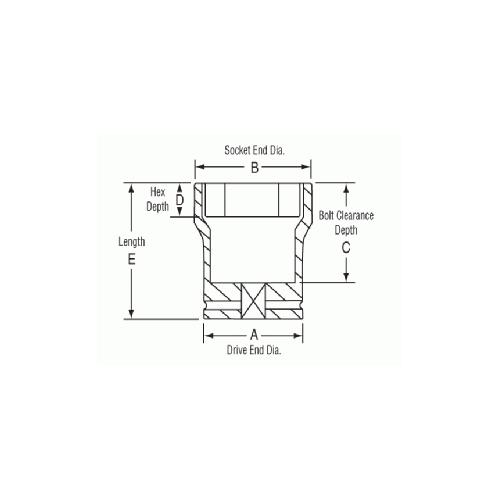 GP® 3050MD Deep Length Socket, 3/4 in, 50 mm Hex Socket, 6 Points