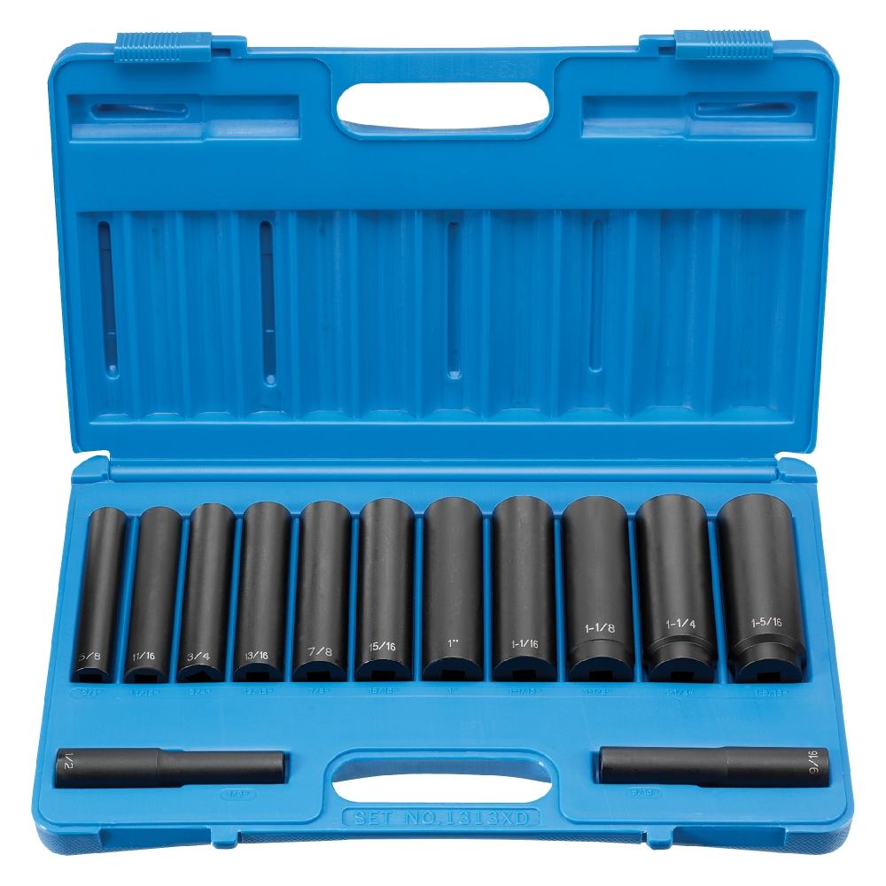 - 1/2 in Drive 13 Piece Extra-Deep Set