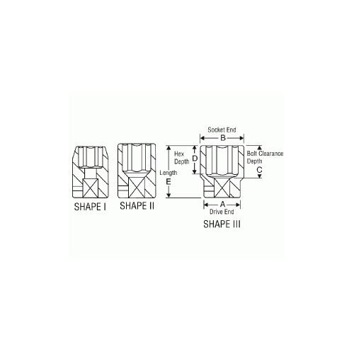 GP® 2012R Standard Length Socket, 1/2 in, 3/8 in Hex Socket, 6 Points