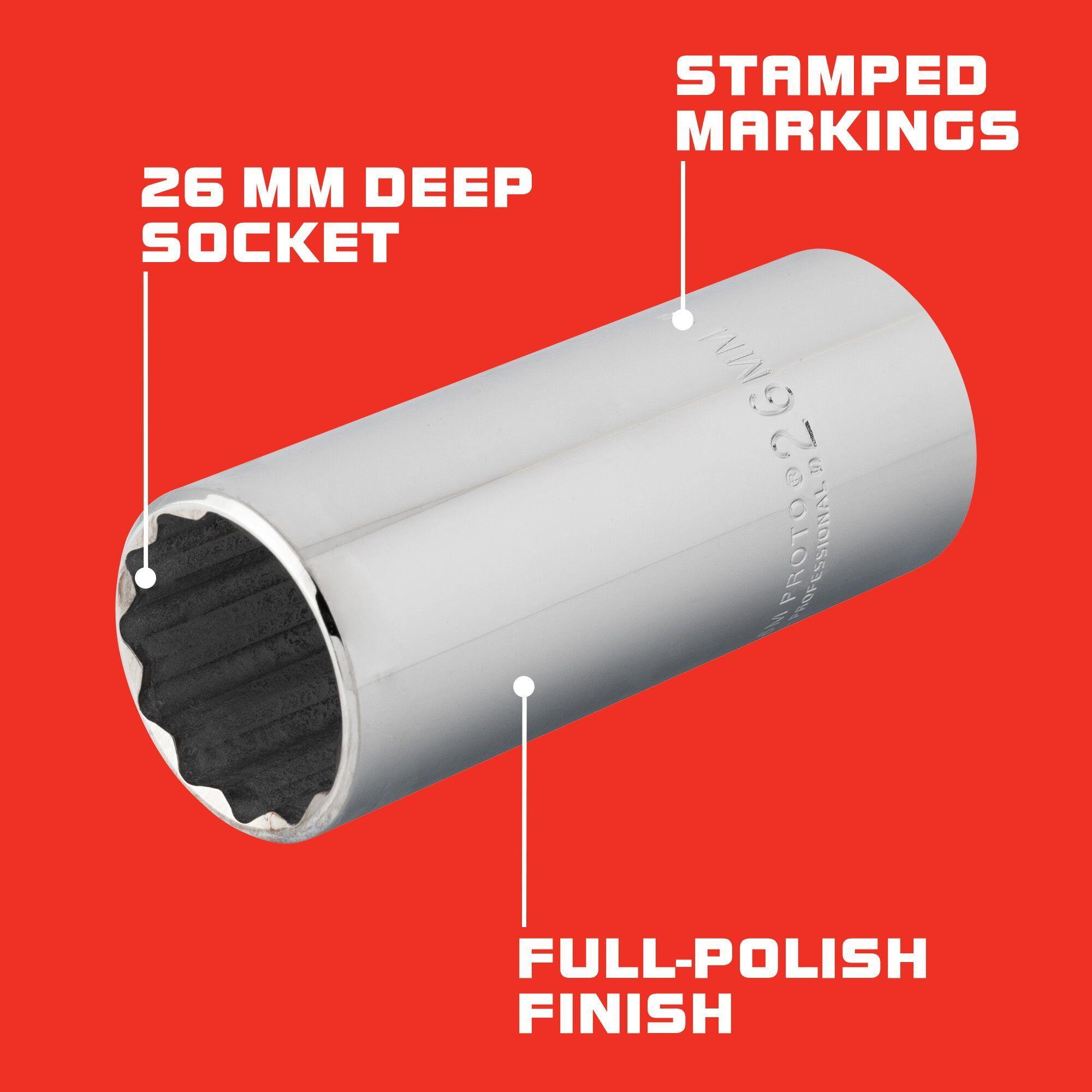 Proto® TorquePlus™ J5326M Deep Length Socket, Metric, 1/2 in Square Drive, 26 mm
