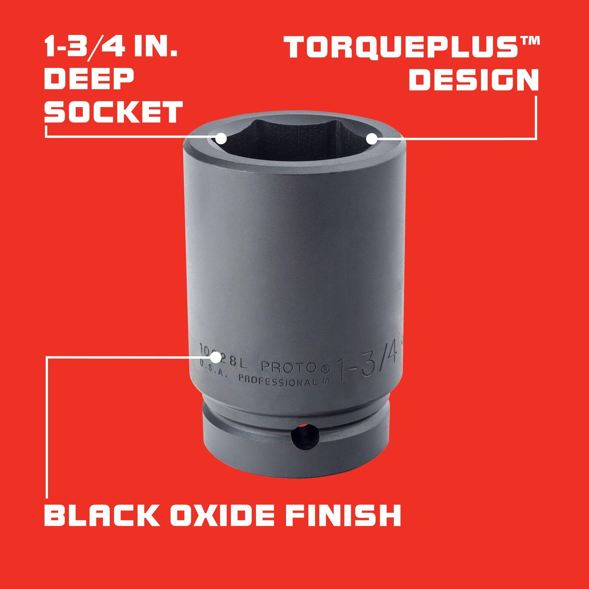 Proto® TorquePlus™ J10028L Deep Length Socket, Imperial, 1 in Square Drive, 1-3/4 in