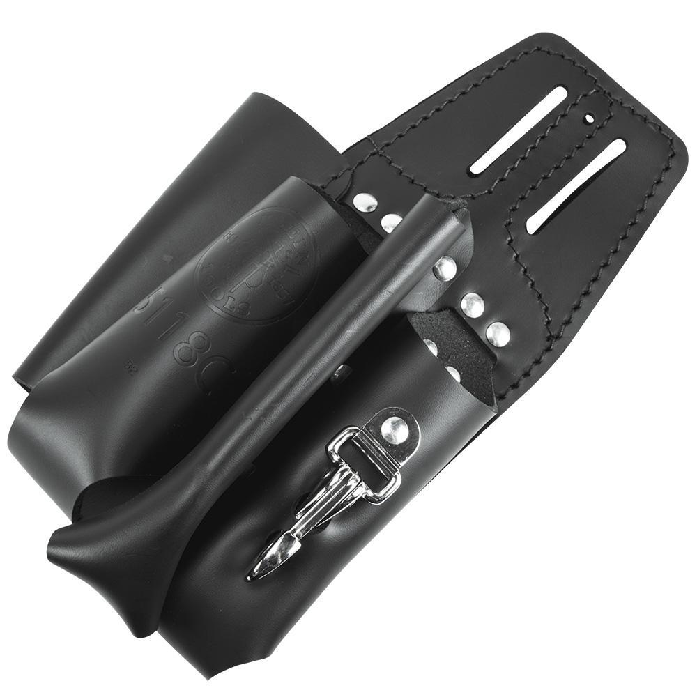 This Klein Tools 4-Tool Holder features pockets designed to accommodate pliers, folding rule, screwdriver and a wrench. Designed to attach to belts up to 2-Inch (5.1 cm) wide, this tool pouch offers convenient access and storage. Made of black leather riveted construction to stand up to the harshest job sites.