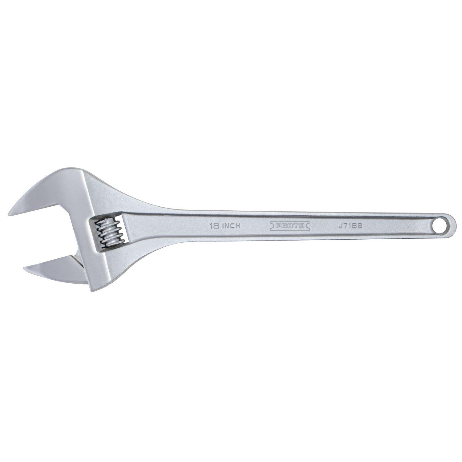 Proto® J718B Non-Insulated Standard Wrench, 2-1/16 in Wrench, Polished Chrome, 18-7/32 in OAL, Alloy Steel Jaw, Alloy Steel Body, ASME B107.113, Alloy Steel