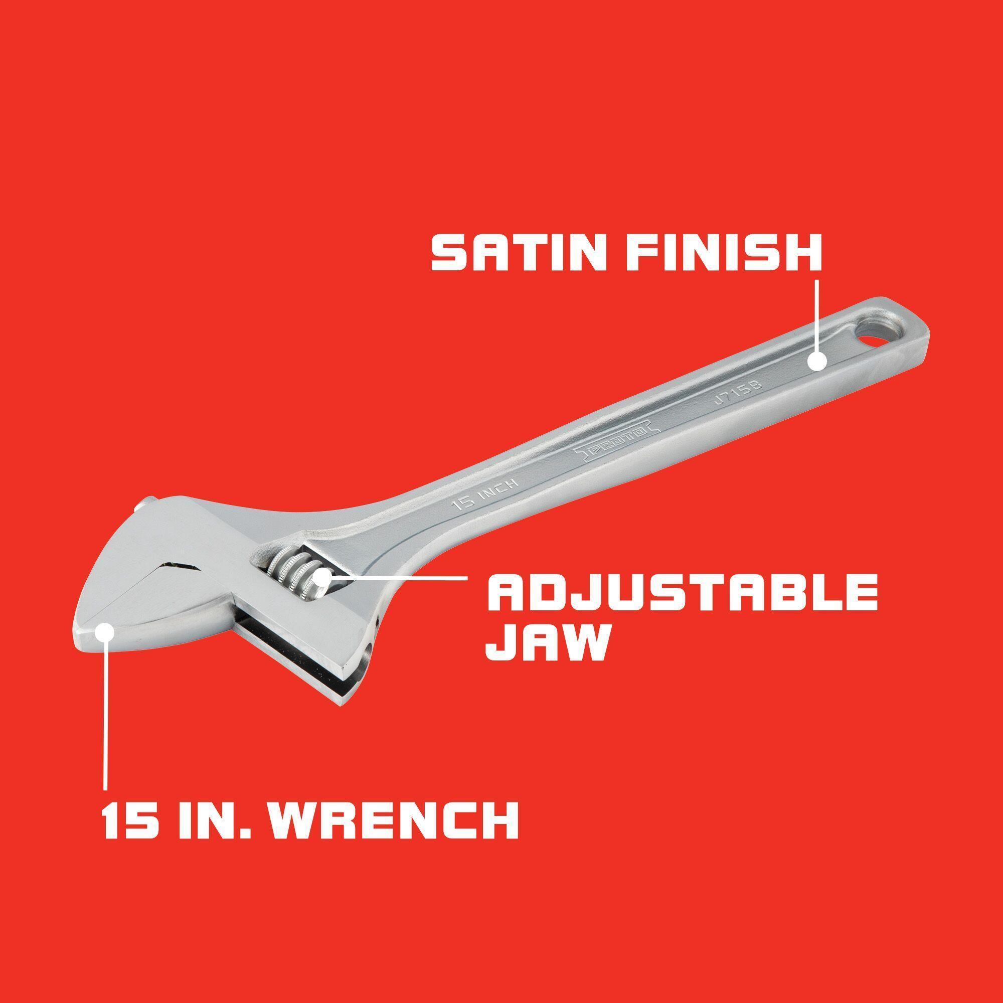Proto® J715B Standard Wrench, 1-11/16 in Wrench, Polished Chrome, 15-5/32 in OAL, Alloy Steel Jaw, Alloy Steel Body, ASME B107.112, Alloy Steel
