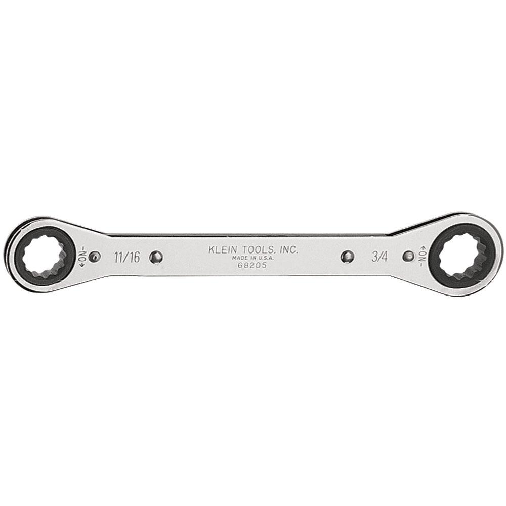 Klein® 68205 Standard Box Wrench, 11/16 x 3/4 in Wrench, 12 Points, 25 deg Offset, 9-1/4 in OAL, Steel, Polished Chrome