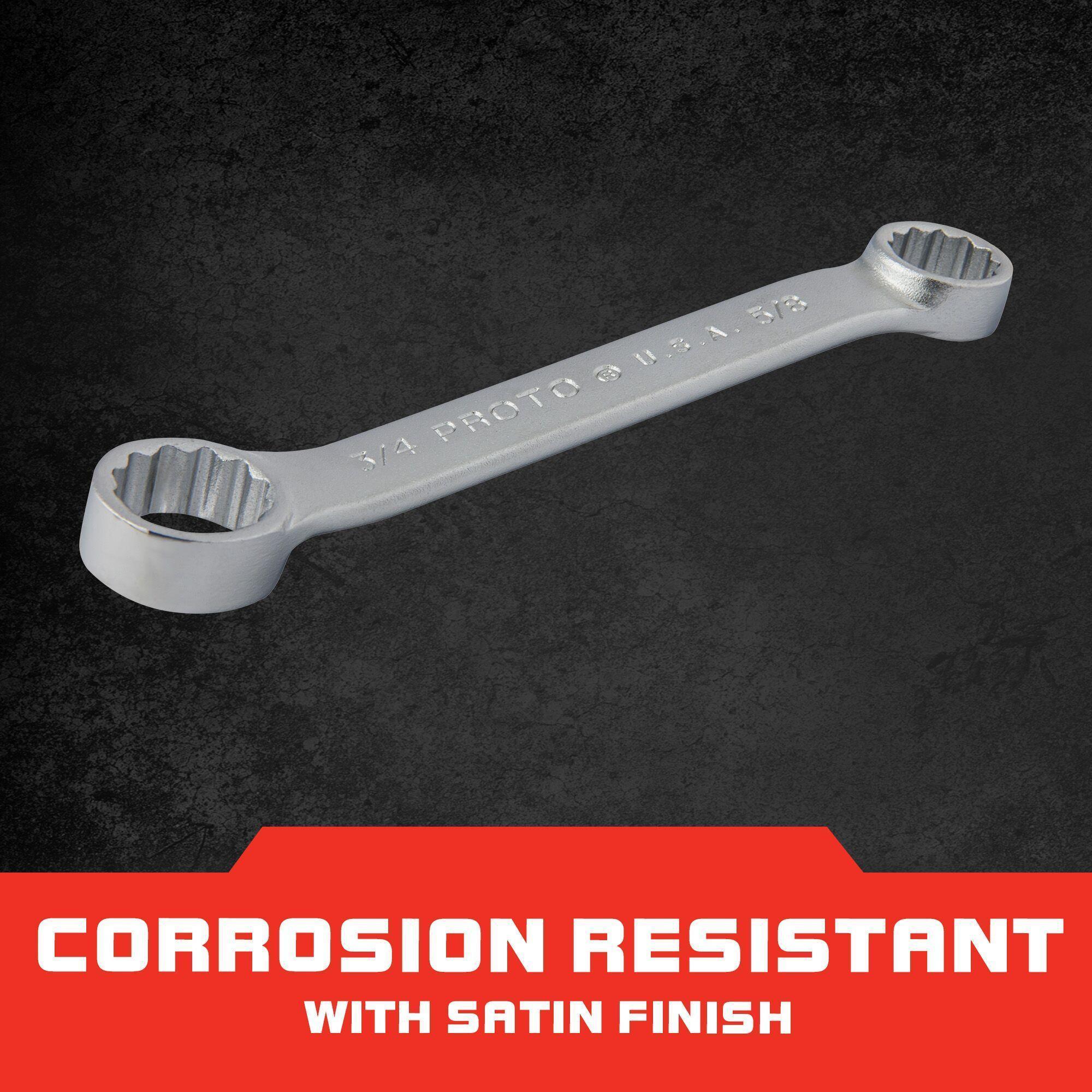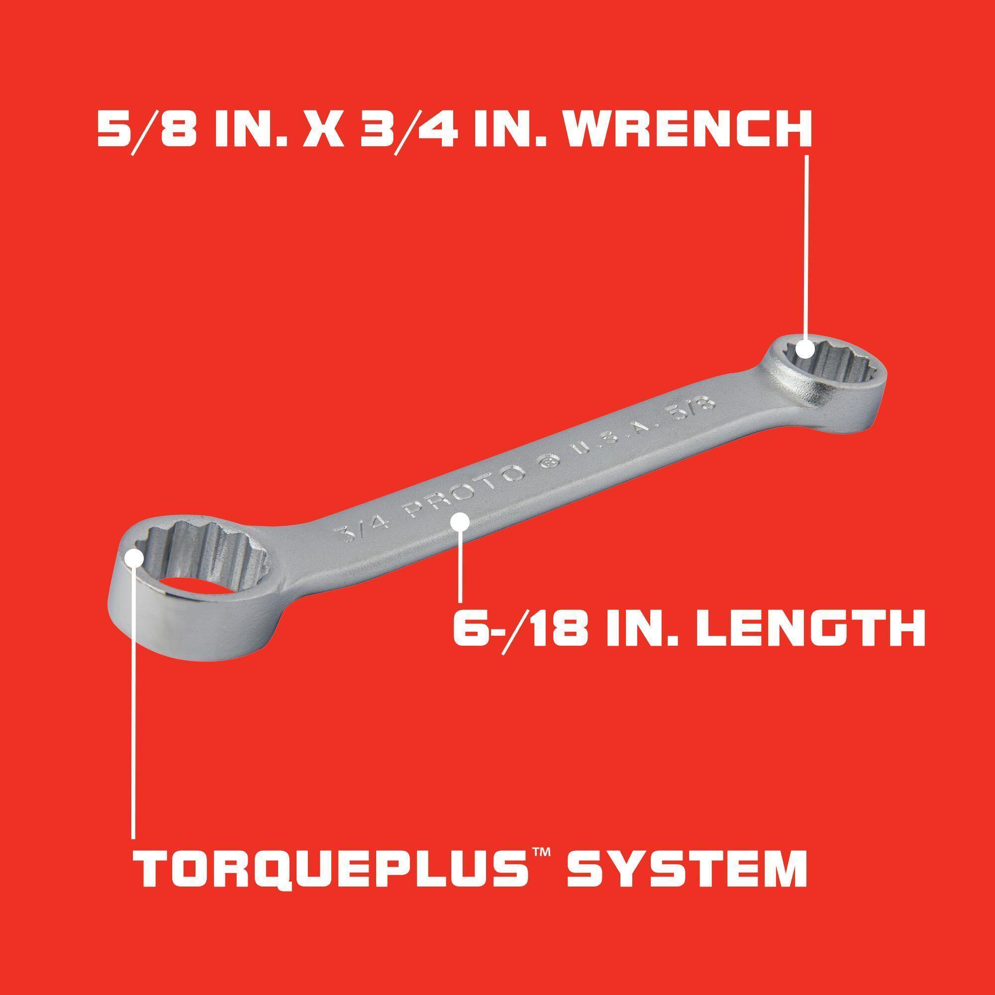 Proto® TorquePlus™ J1131 Box End Wrench, 5/8 x 3/4 in Wrench, 12 Points, 15 deg Offset, 6-1/8 in OAL, Alloy Steel, Satin, ASME B107.100, AS954E S3.8.1